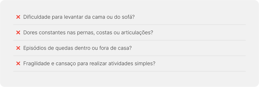 A falta de movimento pode acelerar a perda de independência, mas com o nosso método de tratamento, seu familiar pode recuperar força, equilíbrio e qualidade de vida.